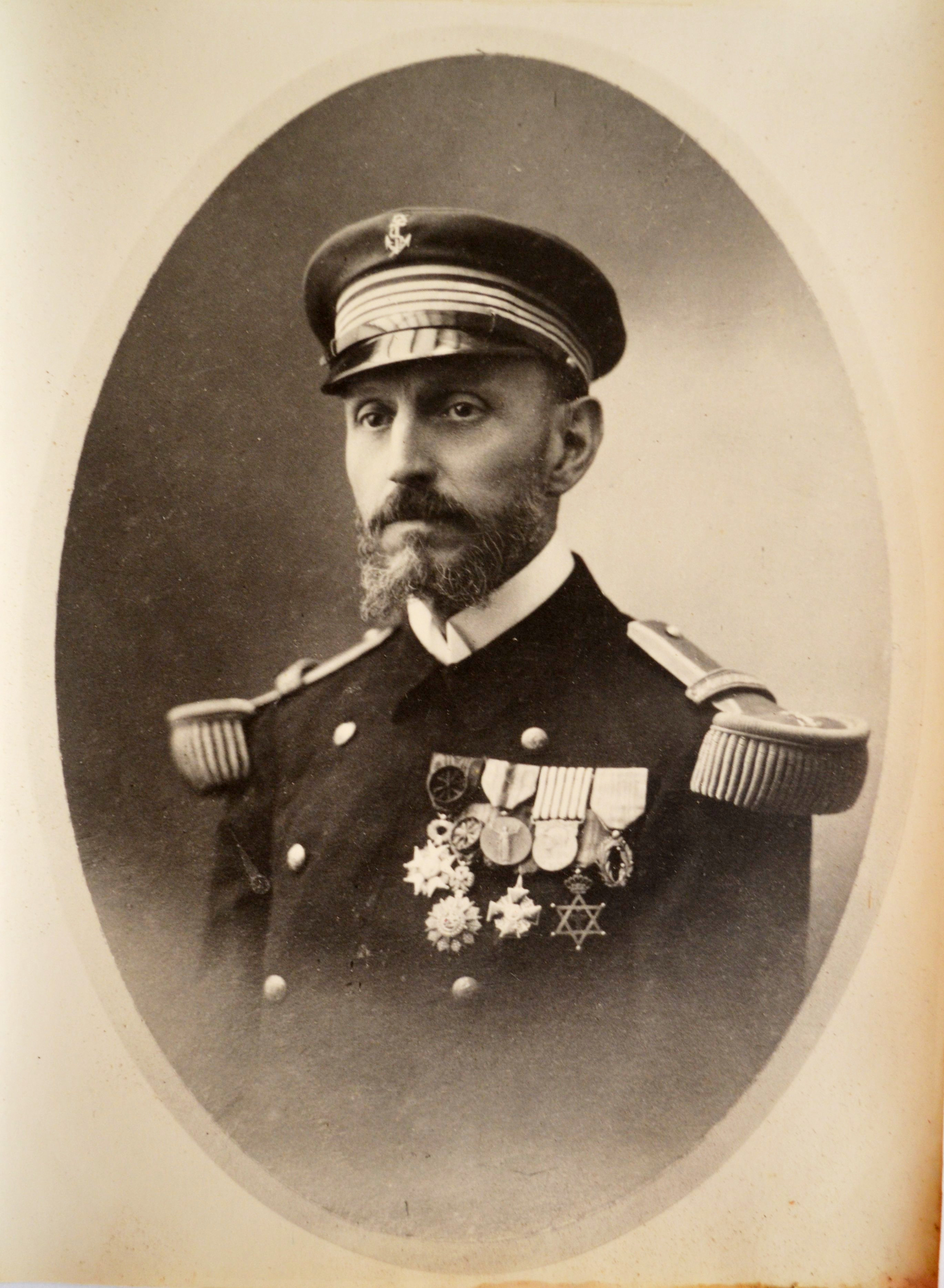 Aux 1er janvier 1908, 1909, sur la canonnière cuirassée "PHLÉGÉTON", Aide de camp auprès du Contre-Amiral Jean BAËHME, Commandant en chef la Division navale de TUNISIE et le Marine dans le Régence.