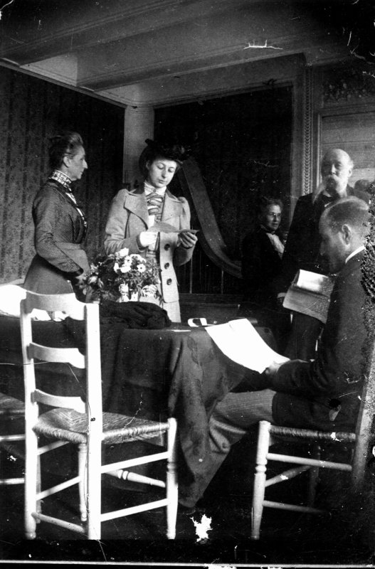 Jeanne Portalis, née Mounier, sa fille Geneviève, au fond Genviève Mounier, née Malouet, son mari le général Casimir Mounier, assis de dos Casimir Portalis. |