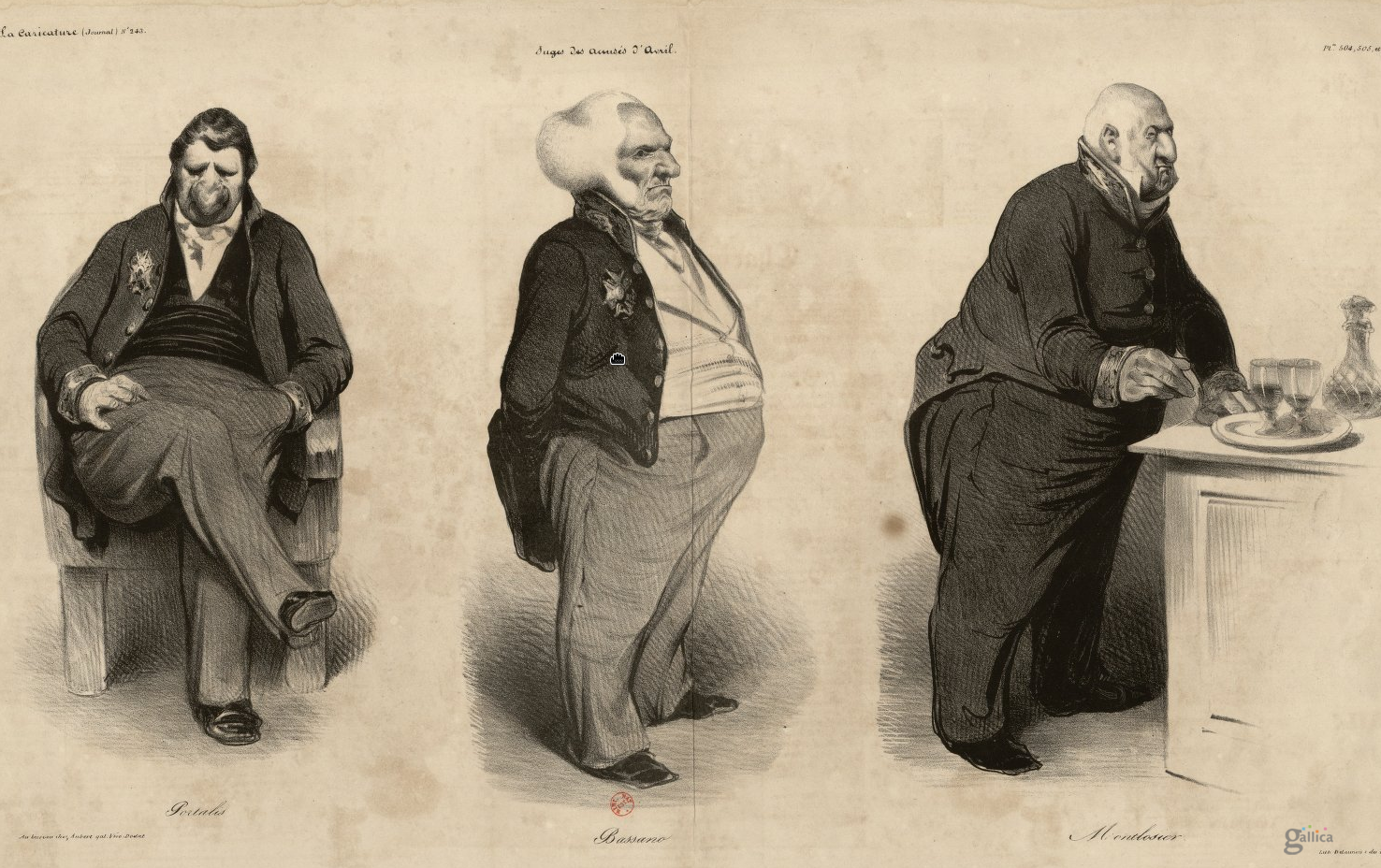 Caricature de trois juges des insurgés d'avril (procès de 1835) |