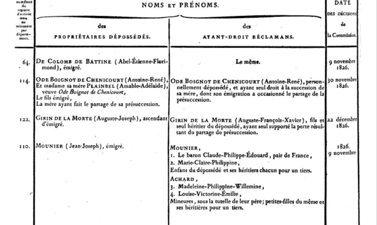 Il ne figure en tout cas pas, en 1826, dans les héritiers de Jean-Joseph au titre des restitutions des biens confisqués aux émigrés. |