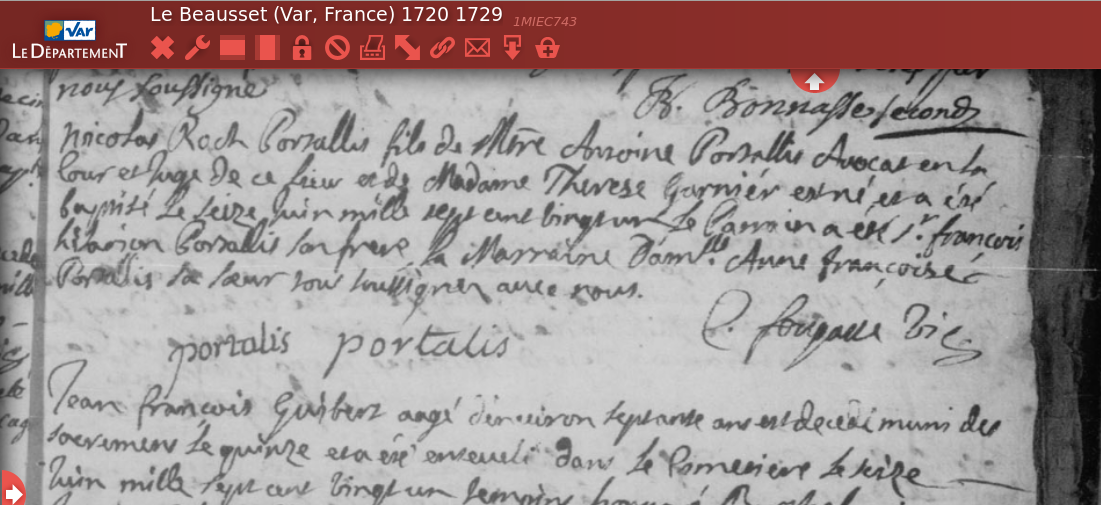 AD83 - Acte de naissance de Nicolas Roch Portalis - 1721 | 1 | 0 | 0 | 0 | 19 juin 2017 - 18:49:06 | Supprimer |