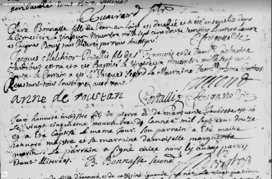| AD83 - Acte de naissance de Jacques Melchior Portalis - 1712 | 1 | 0 | 0 | 0 | 4 juillet 2017 - 19:50:56 | Supprimer |