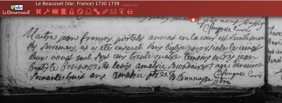 | AD83 - Acte de décès de Jean françois Portalis - 1734 | 1 | 0 | 0 | 0 | 5 septembre 2017 - 07:13:15 | Supprimer |