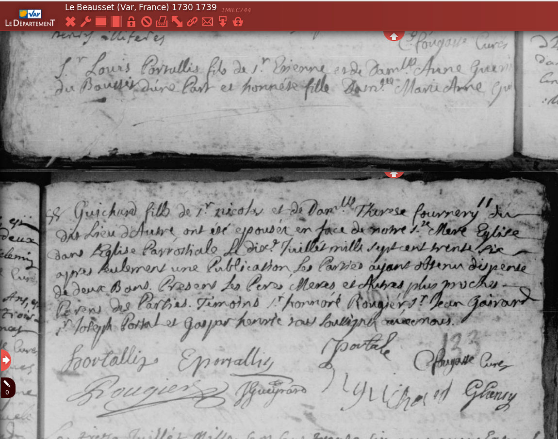 | AD83 - Acte de mariage Portalis-Guichard | 0 | 1 | 0 | 0 | 10 septembre 2017 - 09:28:22 | Supprimer |