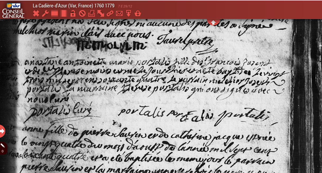 | AD83 - Acte de naissance d'Anastasie Portalis, 1764 | 1 | 0 | 0 | 0 | 3 mars 2014 - 20:04:00 | Supprimer |