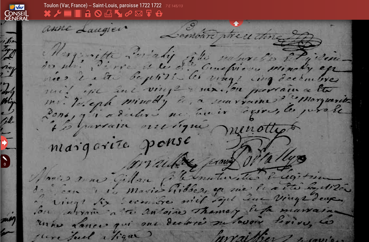 | AD83 - Acte de naissance de Marguerite Portalis - 1722 | 1 | 0 | 0 | 0 | 18 mai 2015 - 09:50:40 | Supprimer |