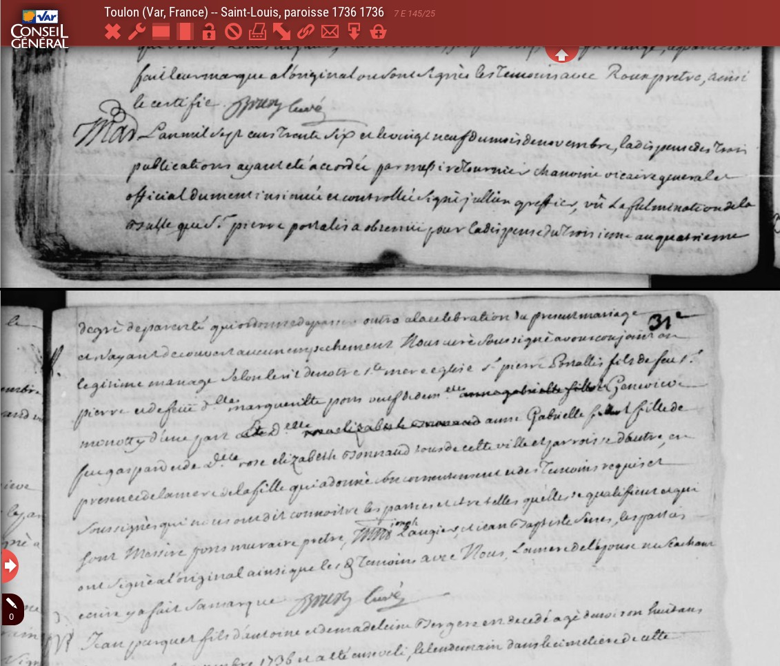 | AD83 - Acte de mariage Portalis-Filhol - 1736 | 0 | 1 | 0 | 0 | May 18, 2015 - 11:34:00 a.m. | Delete |